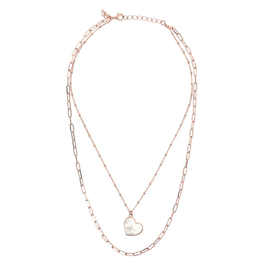 Collana Bronzallure Multifilo Forzatina e Catena Rosario con Pendente Cuore in Pietra Naturale