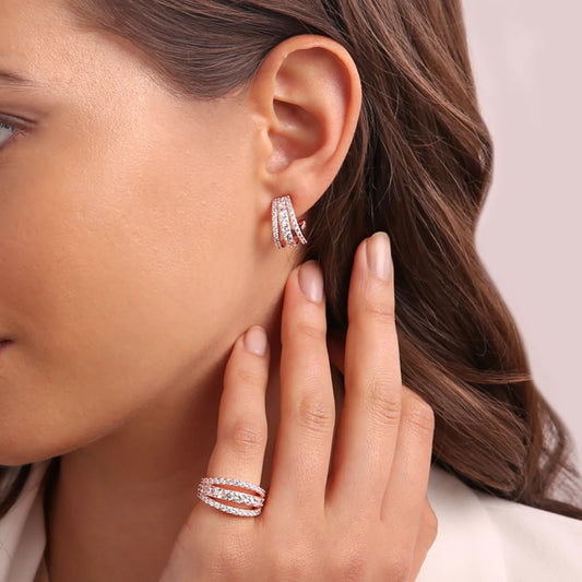 Orecchini Bronzallure a Cerchio Triplo Filo Pavé in Cubic Zirconia