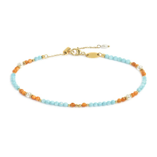 Cavigliera Marlù donna Elementi madreperla colorati e perle bianche irregolari