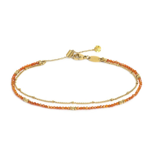 Cavigliera Marlù donna Doppia catena con cristallini arancio