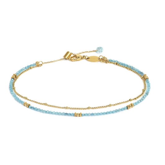 Cavigliera Marlù donna Doppia catena con cristallini acquamarina