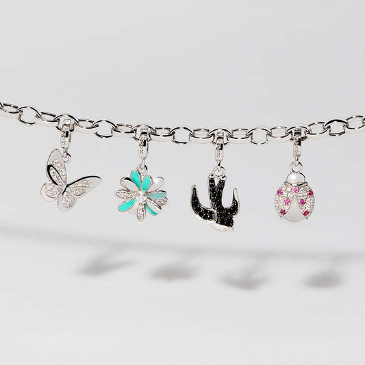 Charm Rosato Storie Margherita con zirconi e smalto turchese