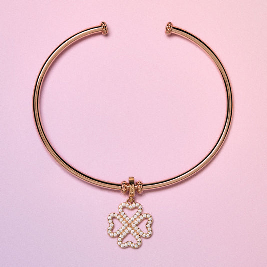 Charm Rosato Storie Quadrifoglio rosè con zirconi