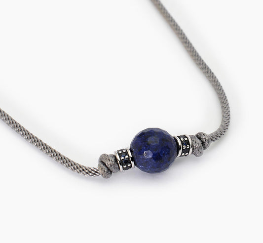 Collana Mabina Uomo in argento con cordino grigio e pietra lapis