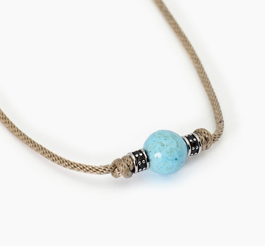 Collana Mabina Uomo in argento con cordino sabbia e pietra turchese