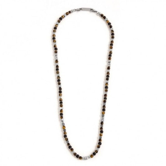 Collana Marlù uomo sfere pietra lavica e occhio di tigre