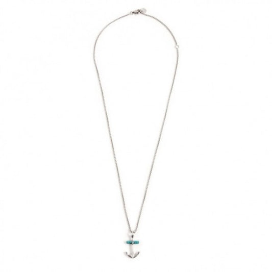 COLLANA MARLÙ ACCIAIO ANCORA PENDENTE TURCHESE 50cm