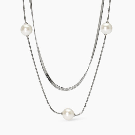 Collana Marlù catena grumetta con sfere e perla irregolare pendente