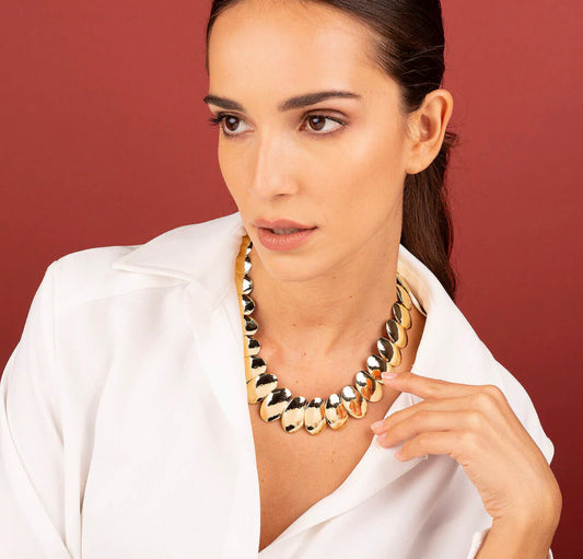 Collana donna Etrusca Multifilo Graduata Catena Ovale Martellata