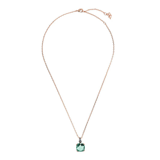 Collana Bronzallure Catena Rolo con Prisma Gem Quadrata e Pavé green