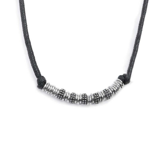 Collana Marlù cordino elementi in acciaio con trama puntinata in black oil