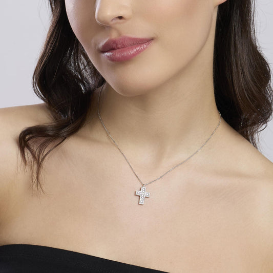 Collana Mabina donna Croce con zaffiro sintetico e zirconi