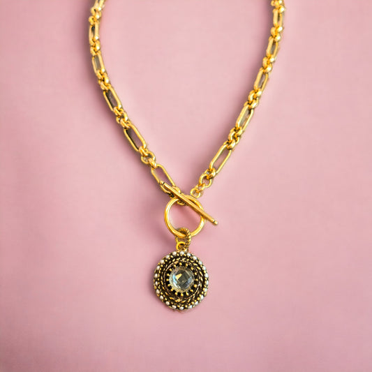 Collana Mabina con ciondolo croce e smeraldi sintetici
