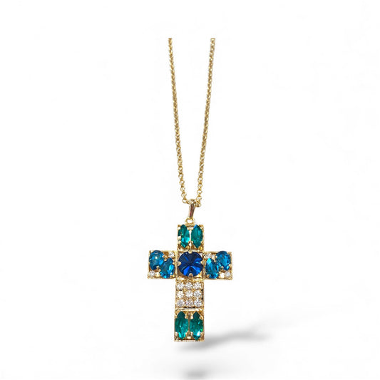 Collana Diamond Accessori donna Croce blu e smeraldo