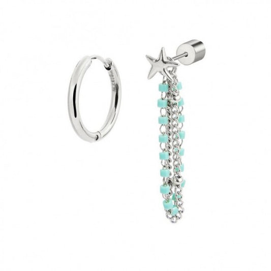 MONO ORECCHINO MULTINDOSSO CERCHIO CON DOPPIA CATENA MIYUKI TURCHESI ACCIAIO