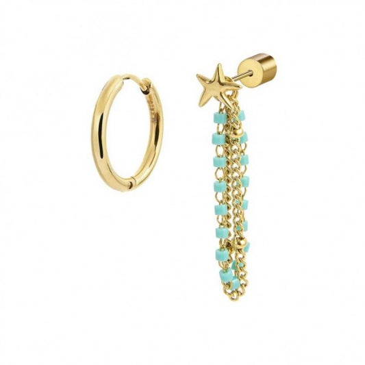 MONO ORECCHINO DONNA MARLU' MULTINDOSSO CERCHIO CON DOPPIA CATENA MIYUKI TURCHESI PVD ORO