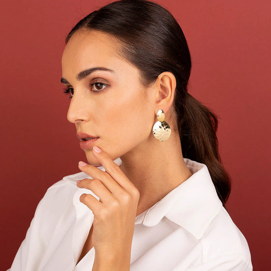 Orecchini donna Etrusca Pendenti a Foglia Martellata