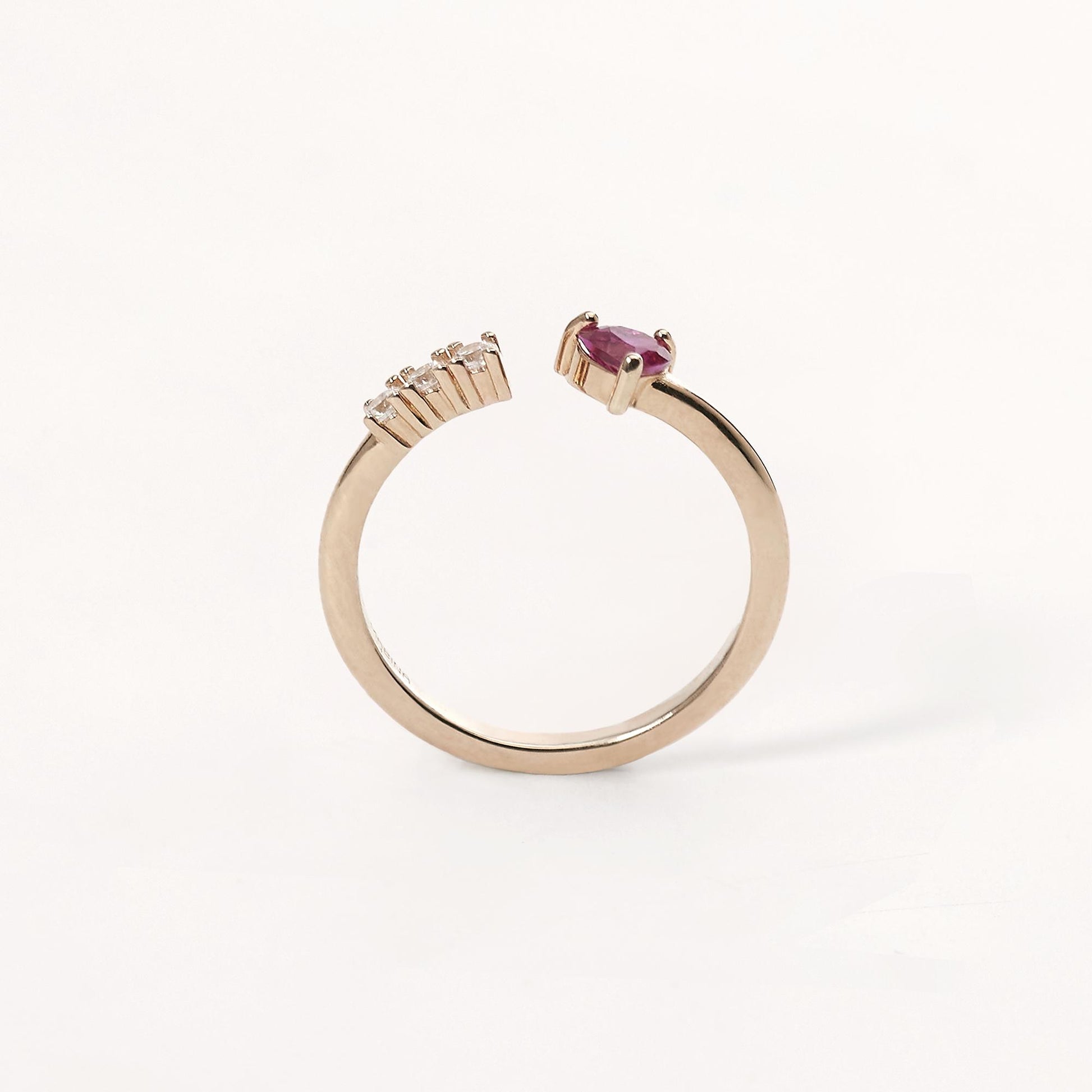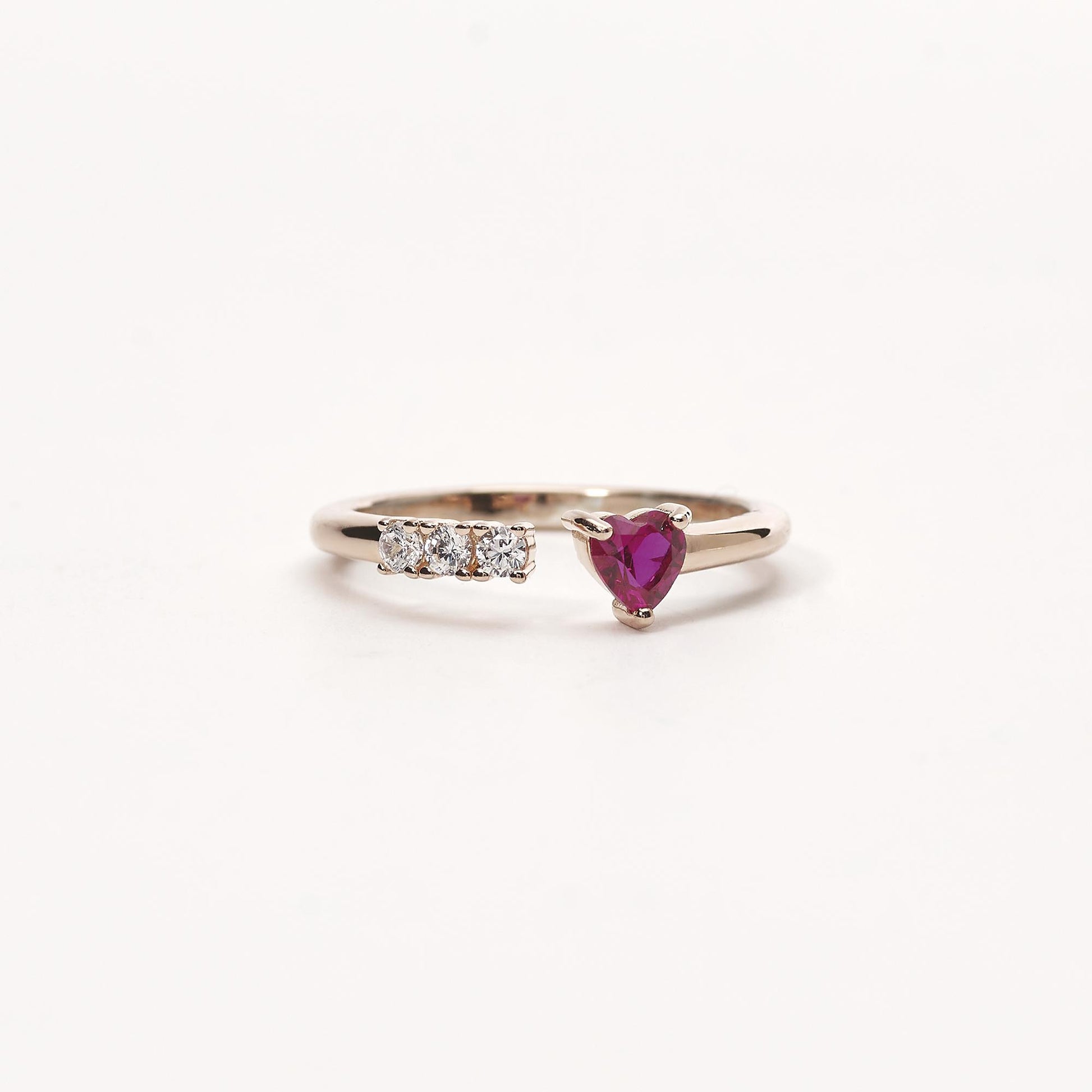 Anello in argento 925/°°° rosato con zirconi Ø 3 mm e rubino sintetico taglio cuore 4x4 mm regolabile da misura 11 a 19.