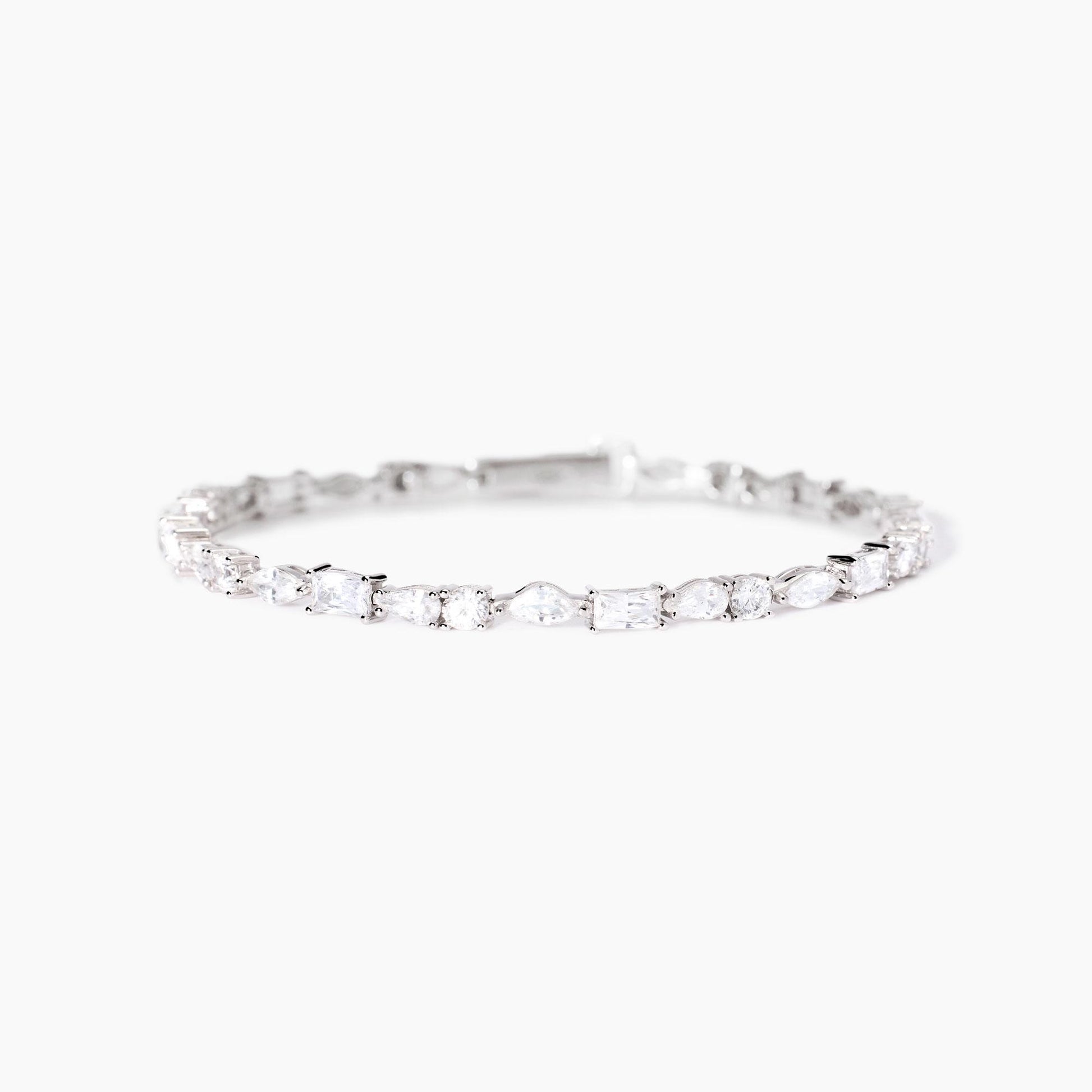 Bracciale da donna in argento rodiato con zirconi di taglio differente.