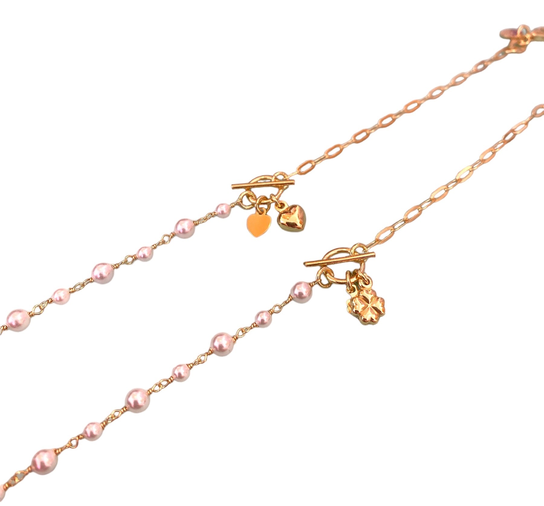 Bracciale catenella bagno oro e perline con charms portafortuna,scegliere il soggetto desiderato