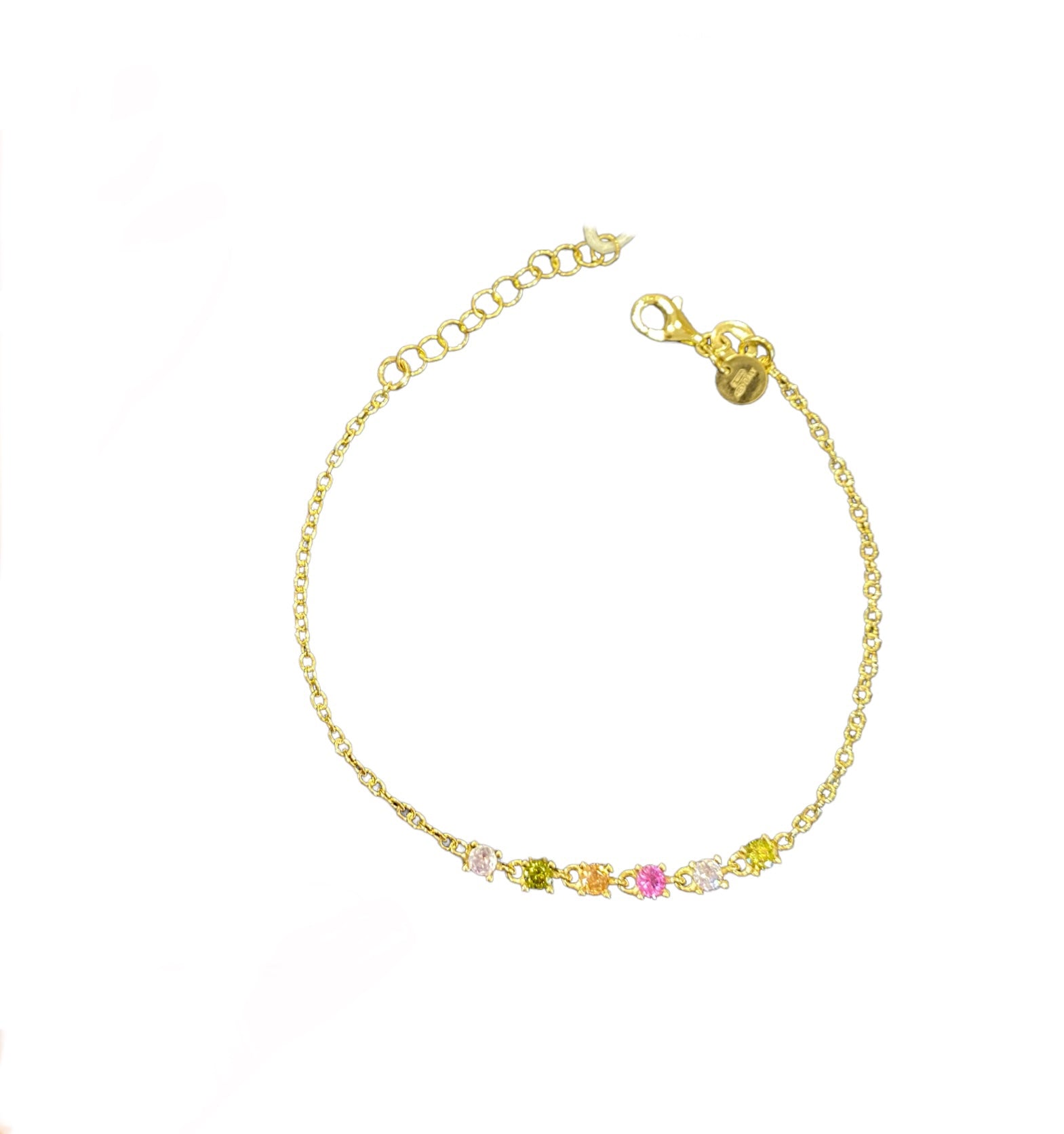 Bracciale in argento 925 bagno oro giallo con zirconi colorati