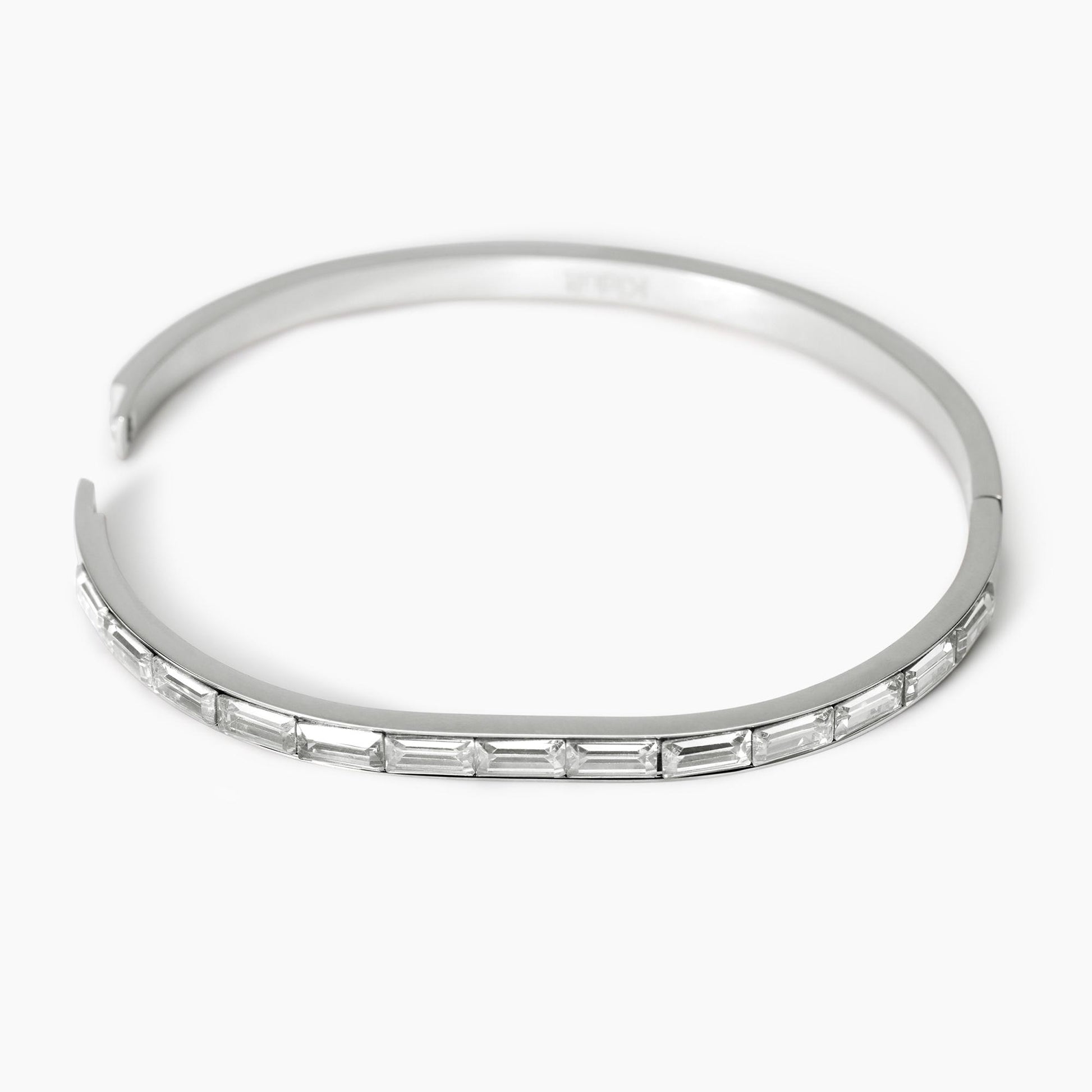 Bracciale bangle in acciaio con zirconi taglio baguette.