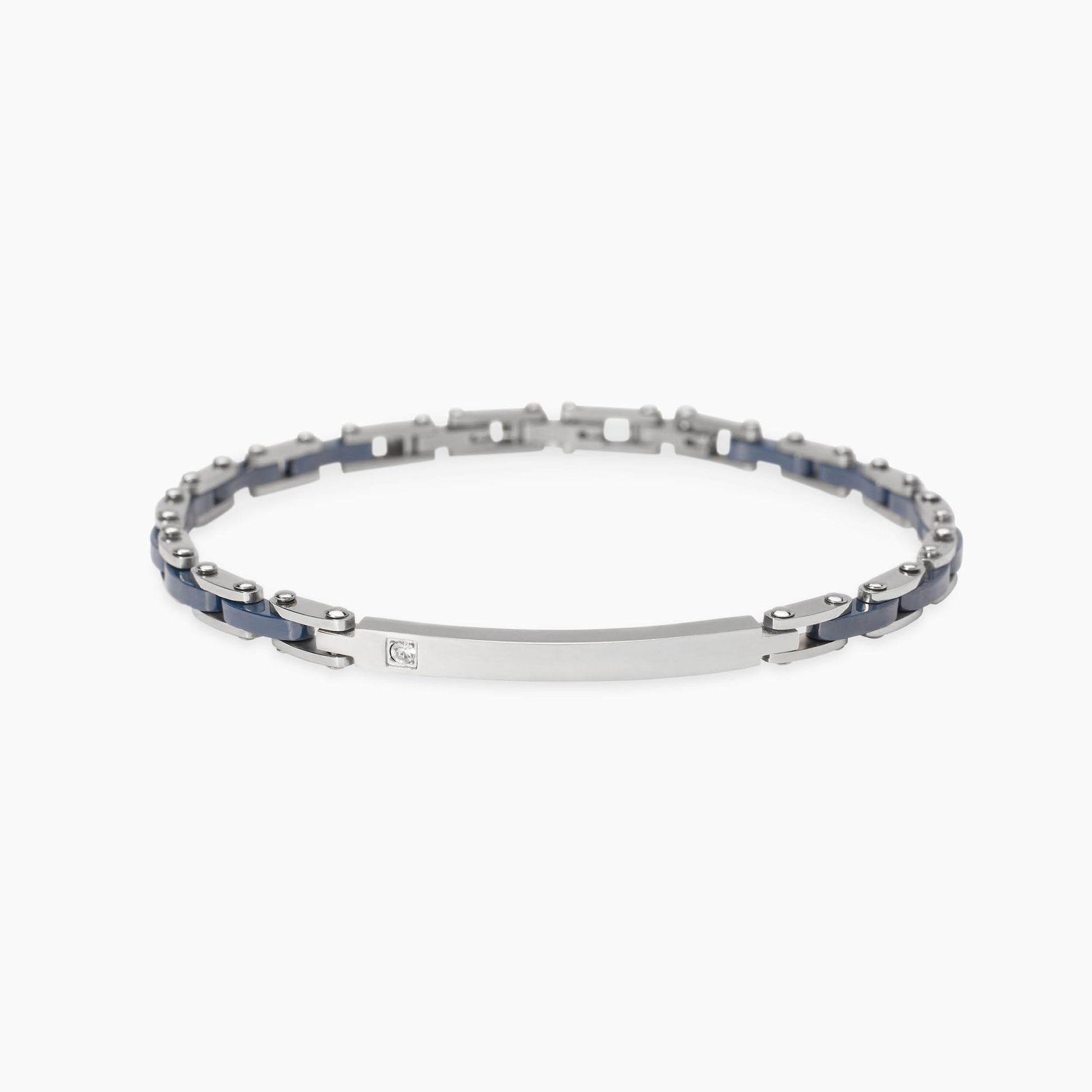Bracciale Kidult Style uomo Piastrina con cristallino e ceramica blu