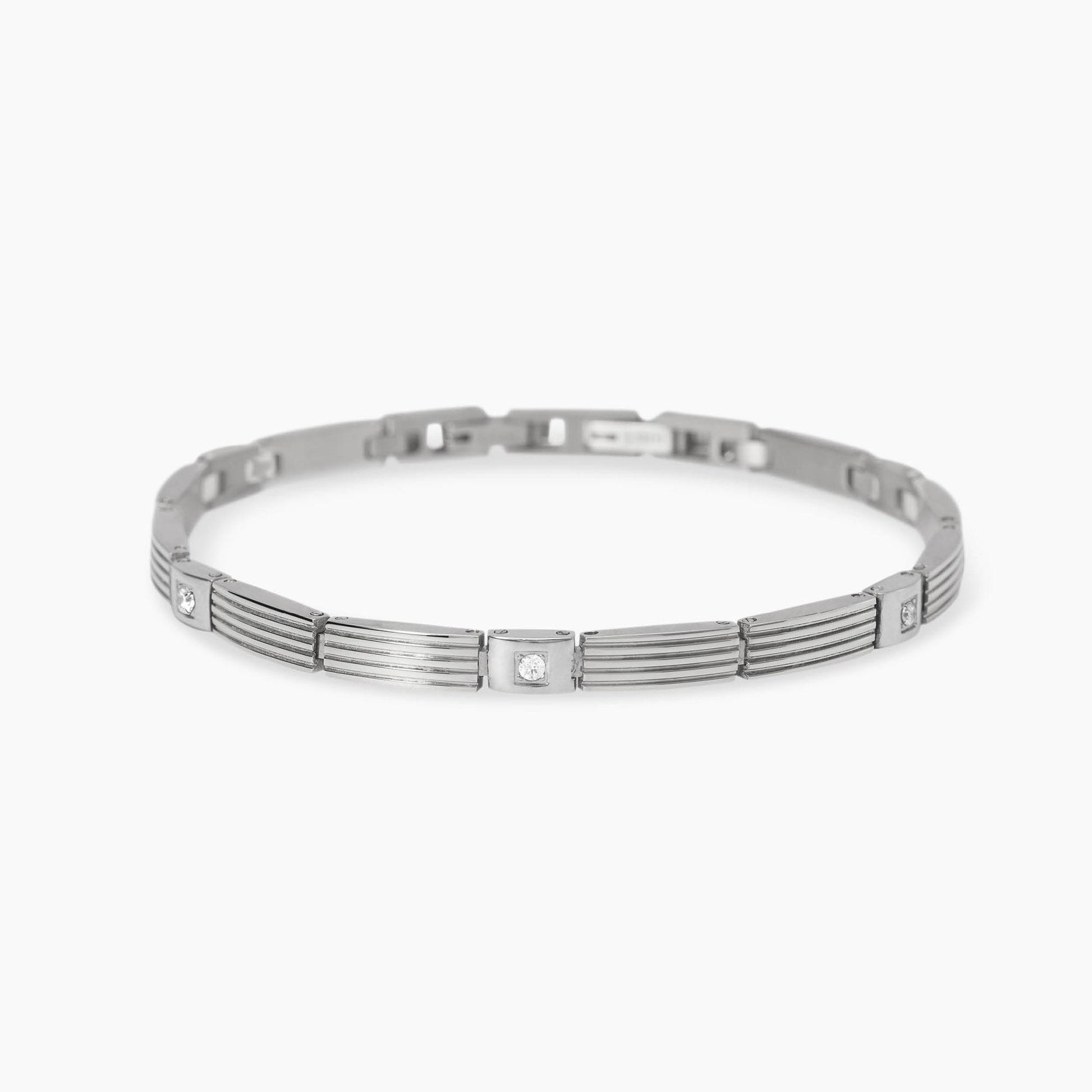 Bracciale Kidult Style uomo Elementi rigati e cristalli bianchi
