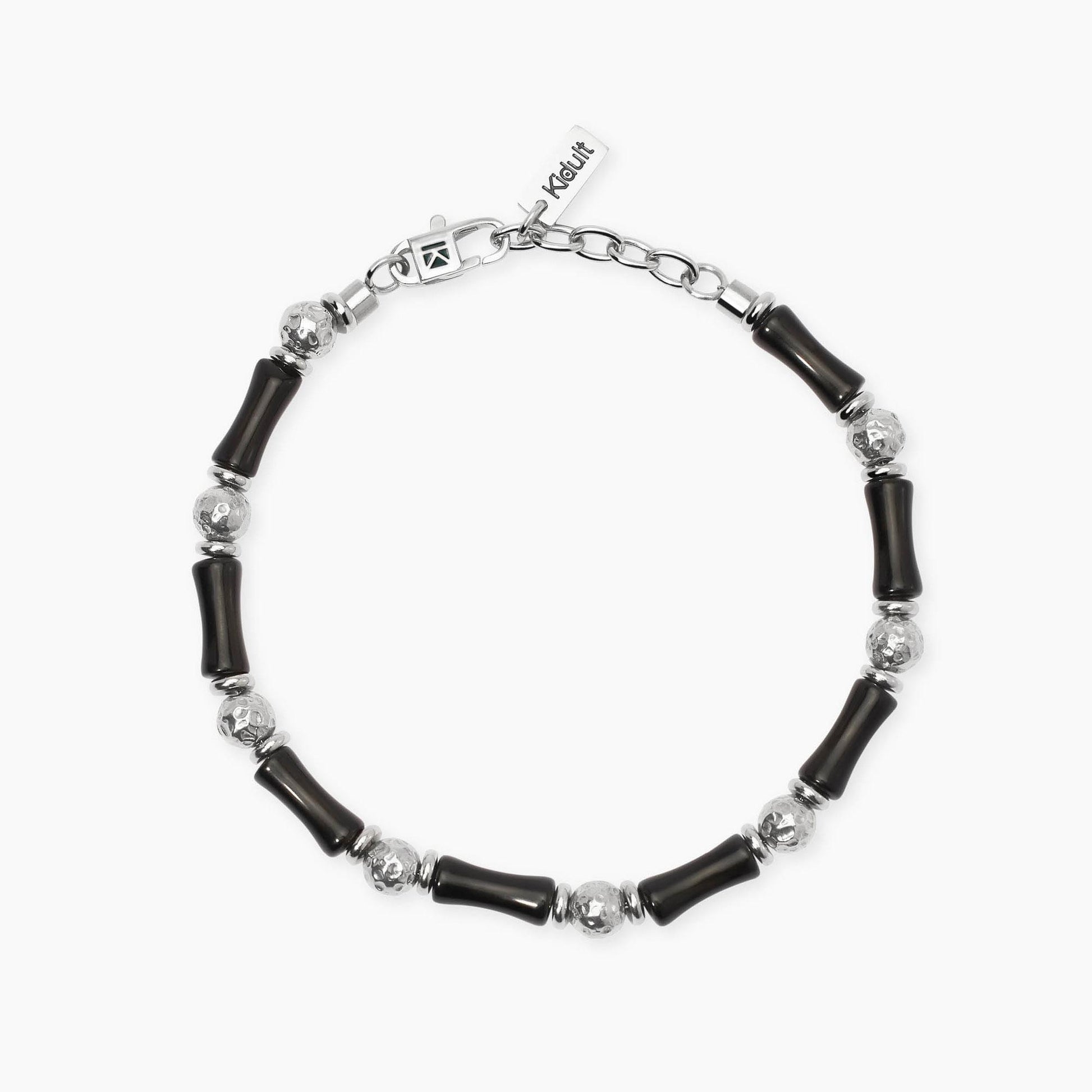Bracciale Kidult Style uomo Ossidiana e sfere martellate