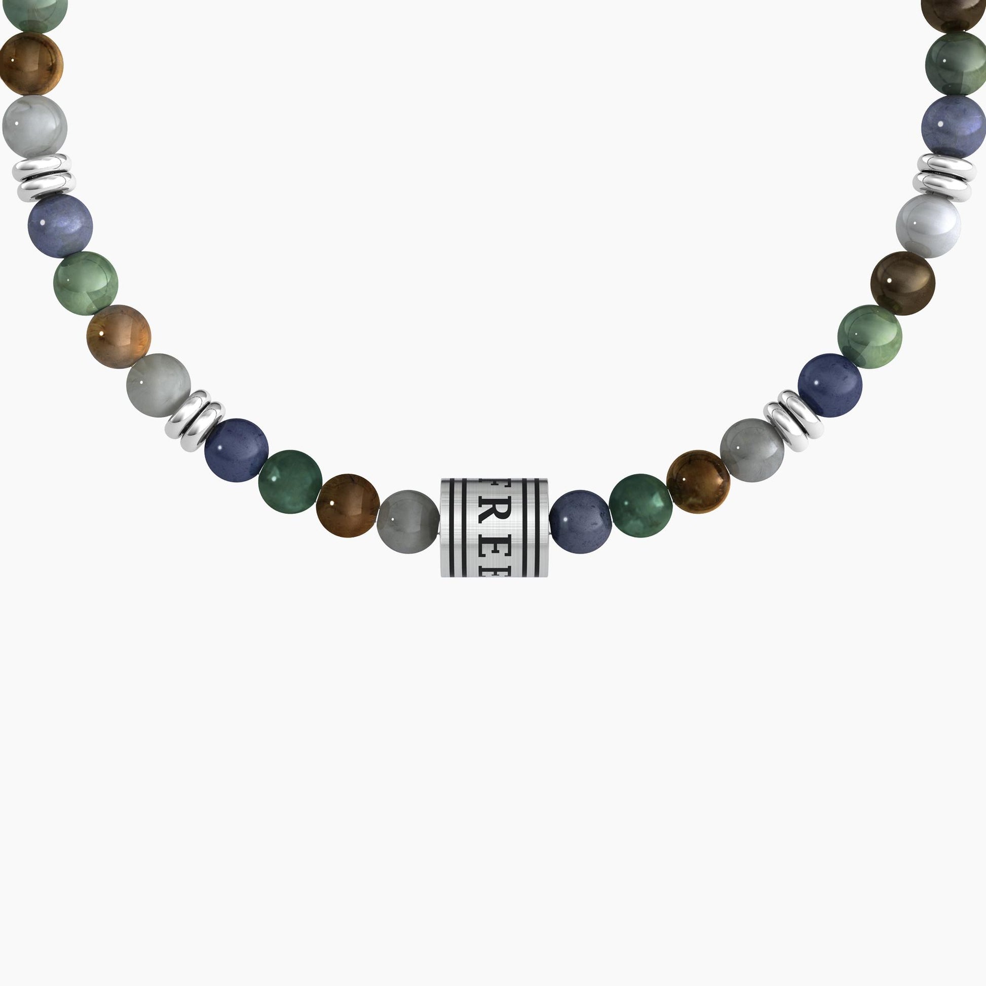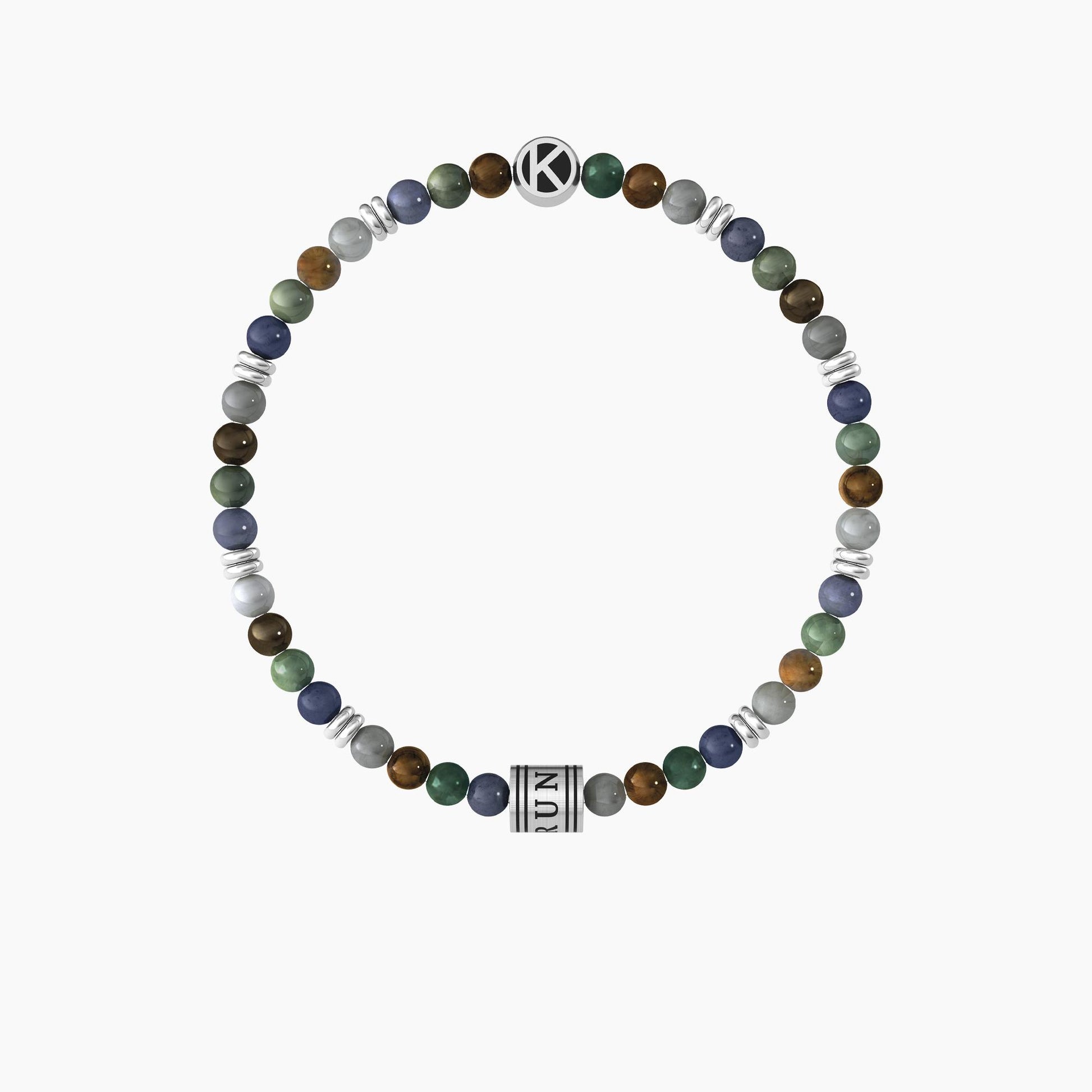 Bracciale elastico con pietre naturali multicolor e inserto in acciaio con scritta "Run free".