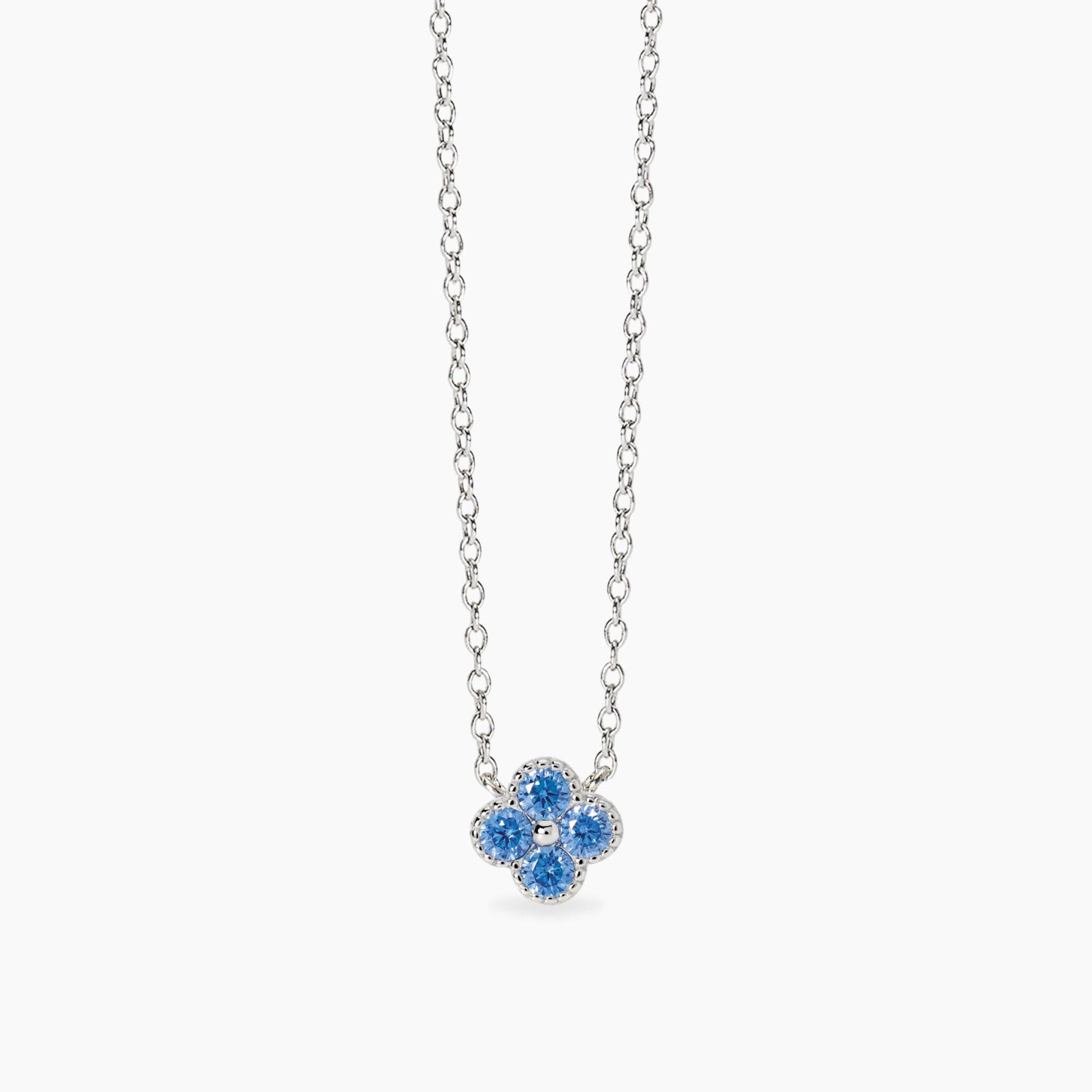 Girocollo in argento con catena rolò e ciondolo fiore in zirconi azzurri.