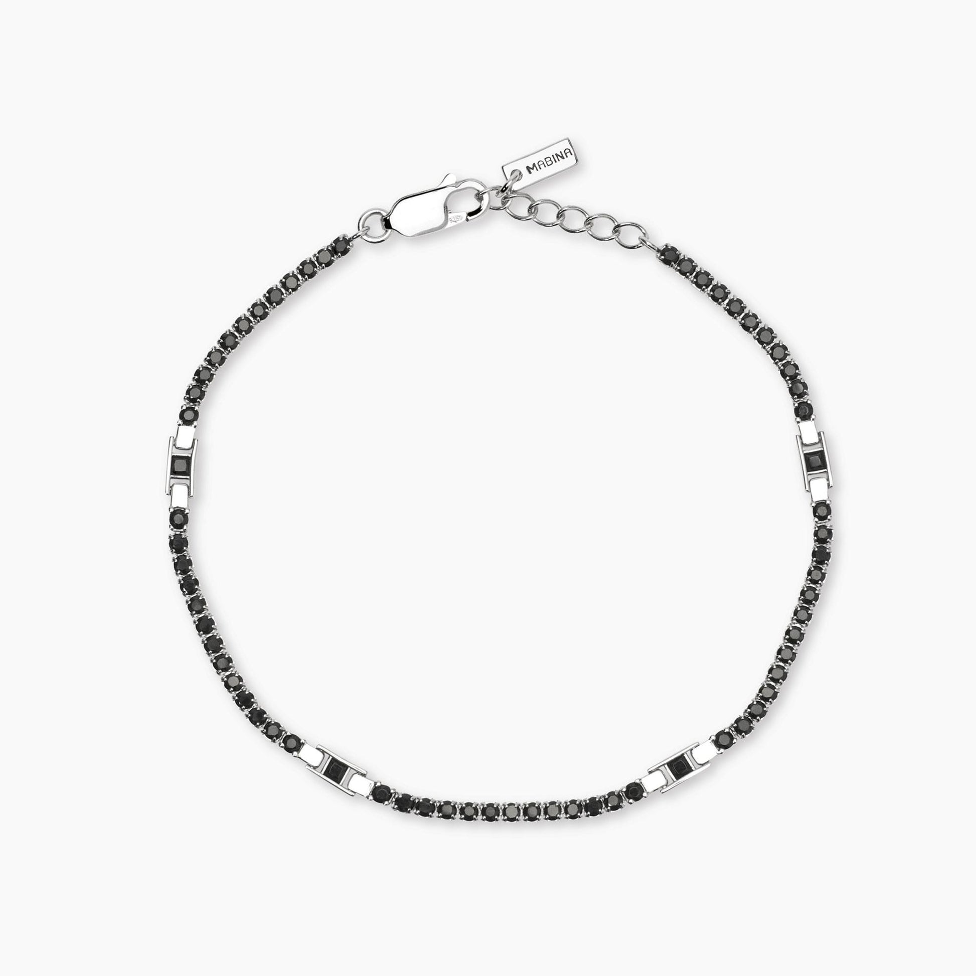 Bracciale tennis regolabile in argento rodiato e zirconi neri taglio quadrato.