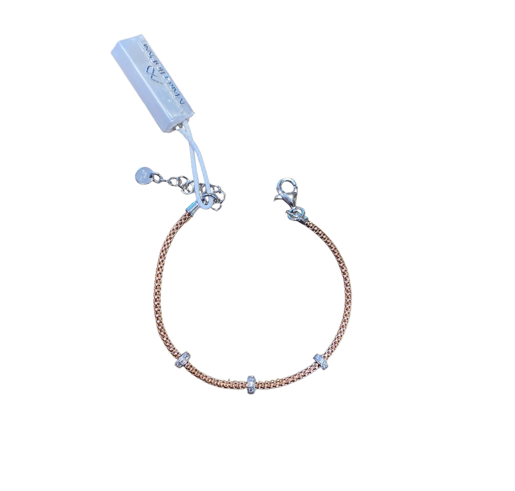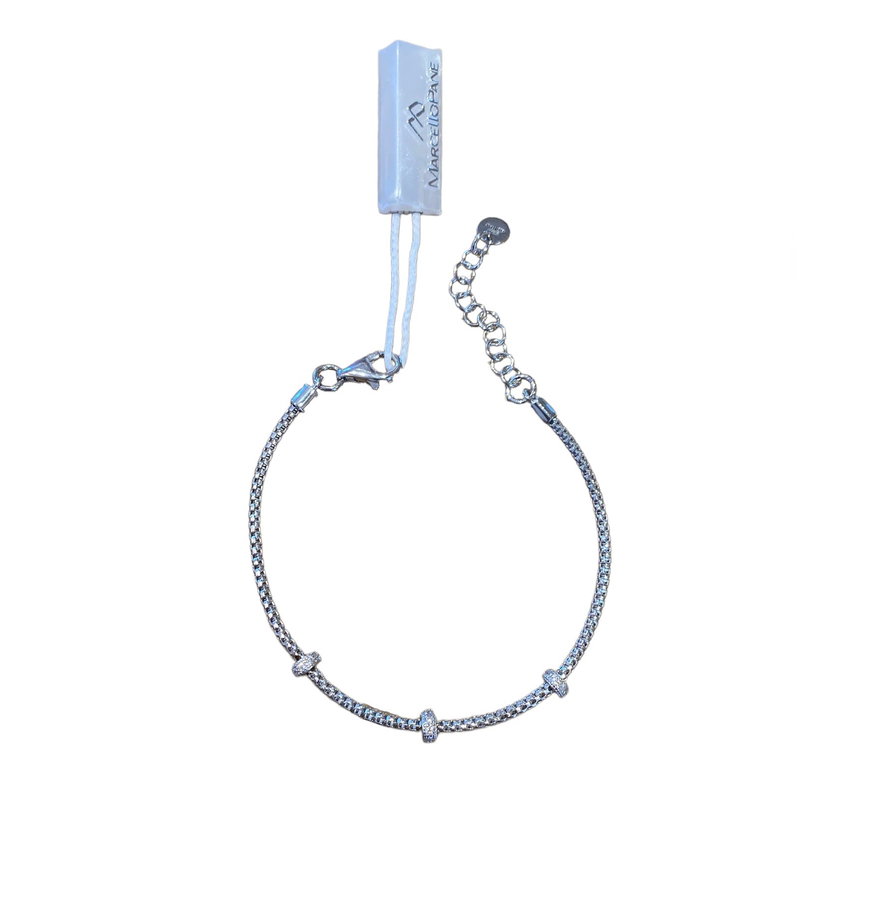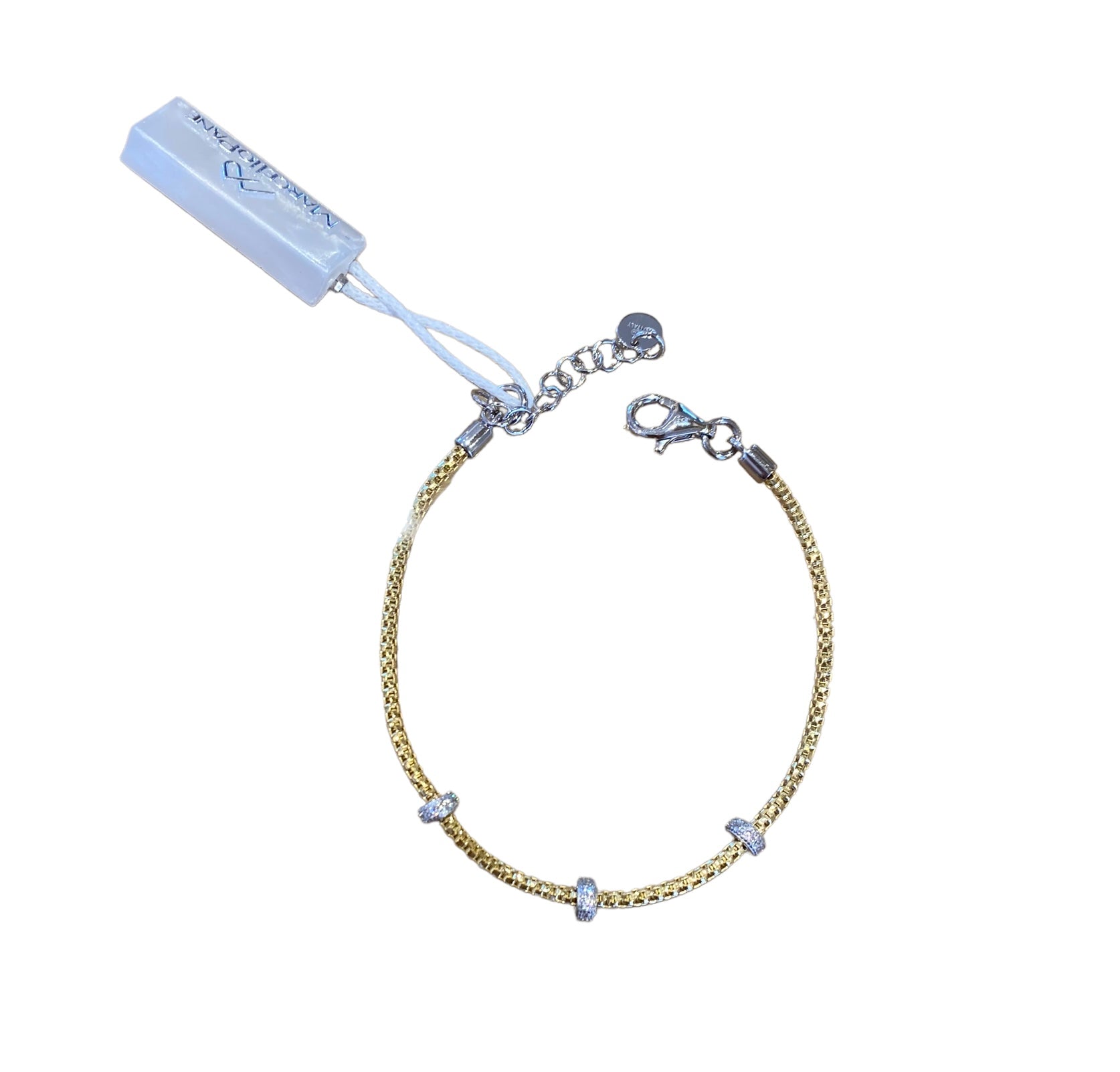 Bracciale singolo Marcello Pane argento modello tre ori con rondelline zirconato . Realizzato in argento 925°% e bagno oro