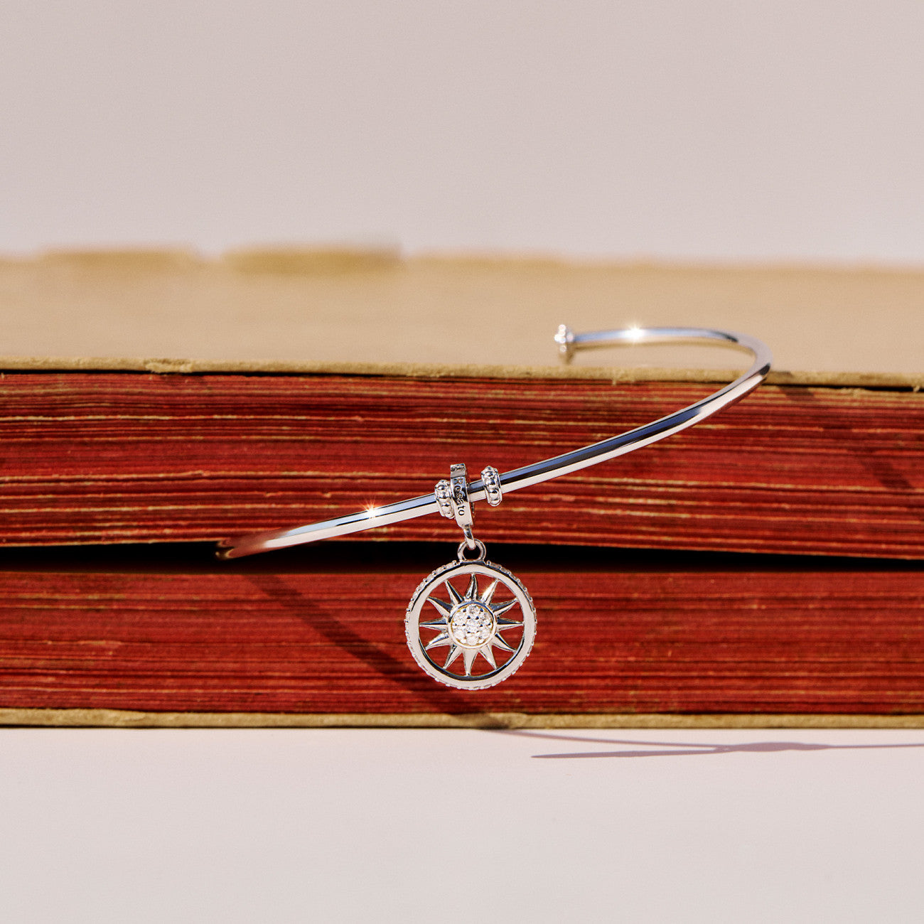 Charm in argento 925‰ a forma di sole, 46 cubic zirconia bianchi