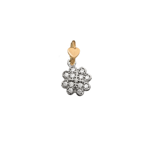 Ciondolo "Quadrifoglio lucine" in argento 925°/°° e zirconi bianchi con contromaglia cuoricino in oro giallo 9 kt.