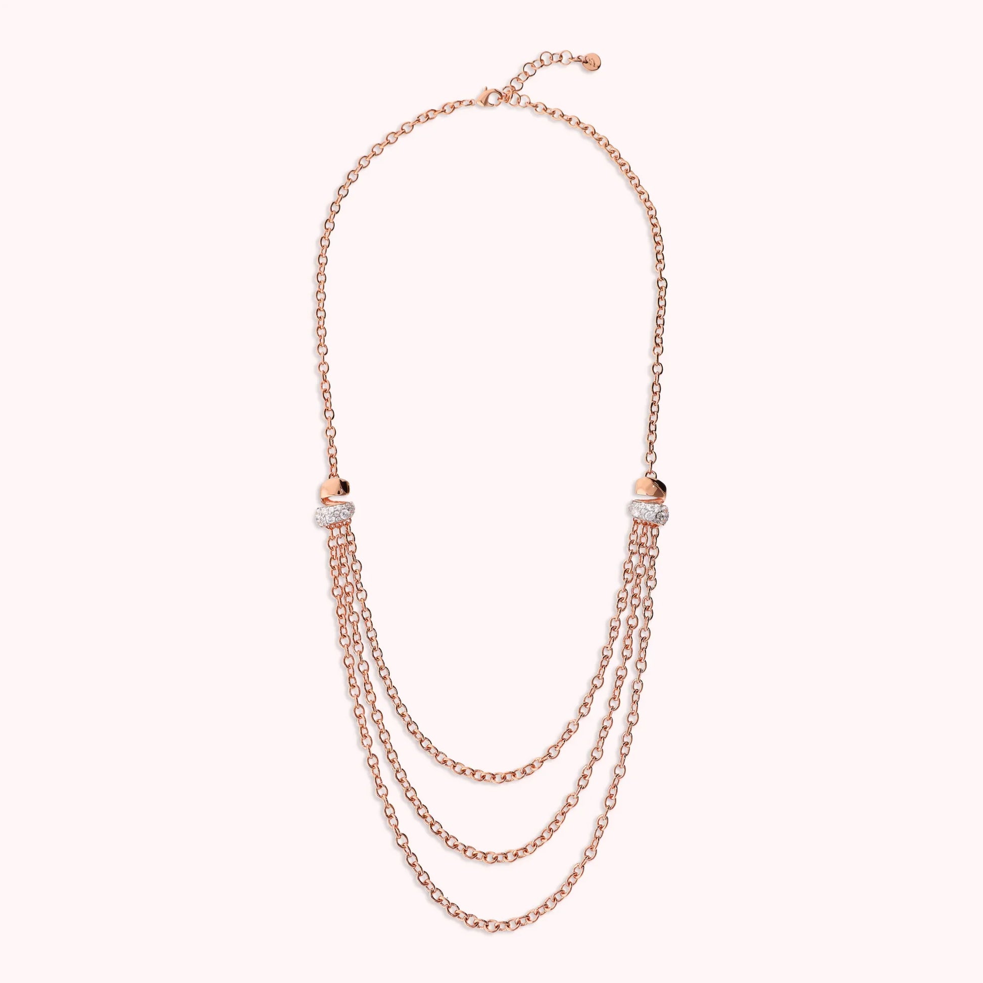 Collana multi-filo Bronzallure realizzata in lega Golden Rosé, placcata Oro rosa 18kt, con catena rolo ovale graduata (20/24/28 cm) ed elementi in pavé di cubic zirconia.