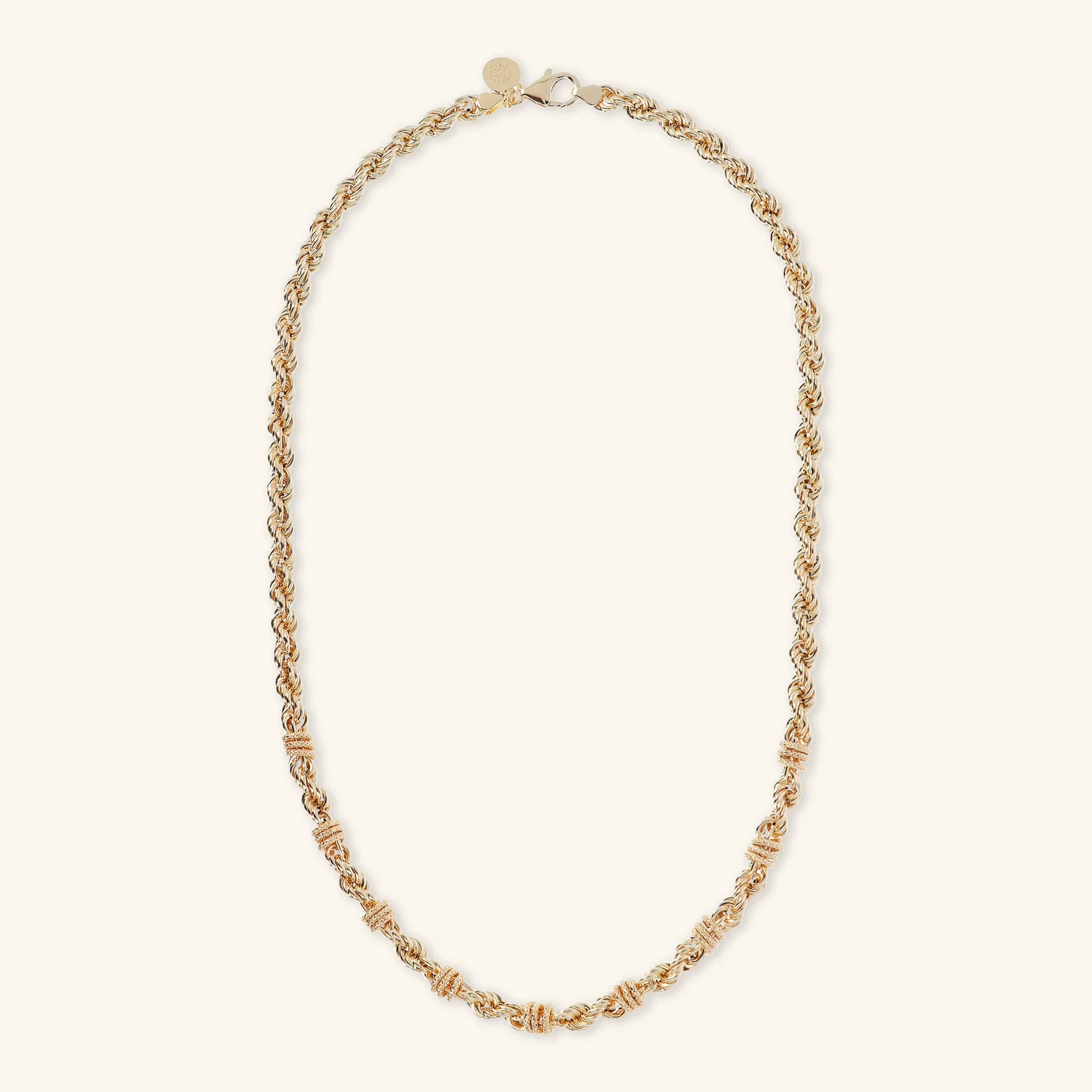 Collana Etrusca Gioielli realizzata in lega Golden, placcata oro giallo 18kt, con catena corda e rondelle golden dalla superficie lavorata; chiusura a moschettone. Disponibile in due misure: short (45.7 cm) e long (61 cm).