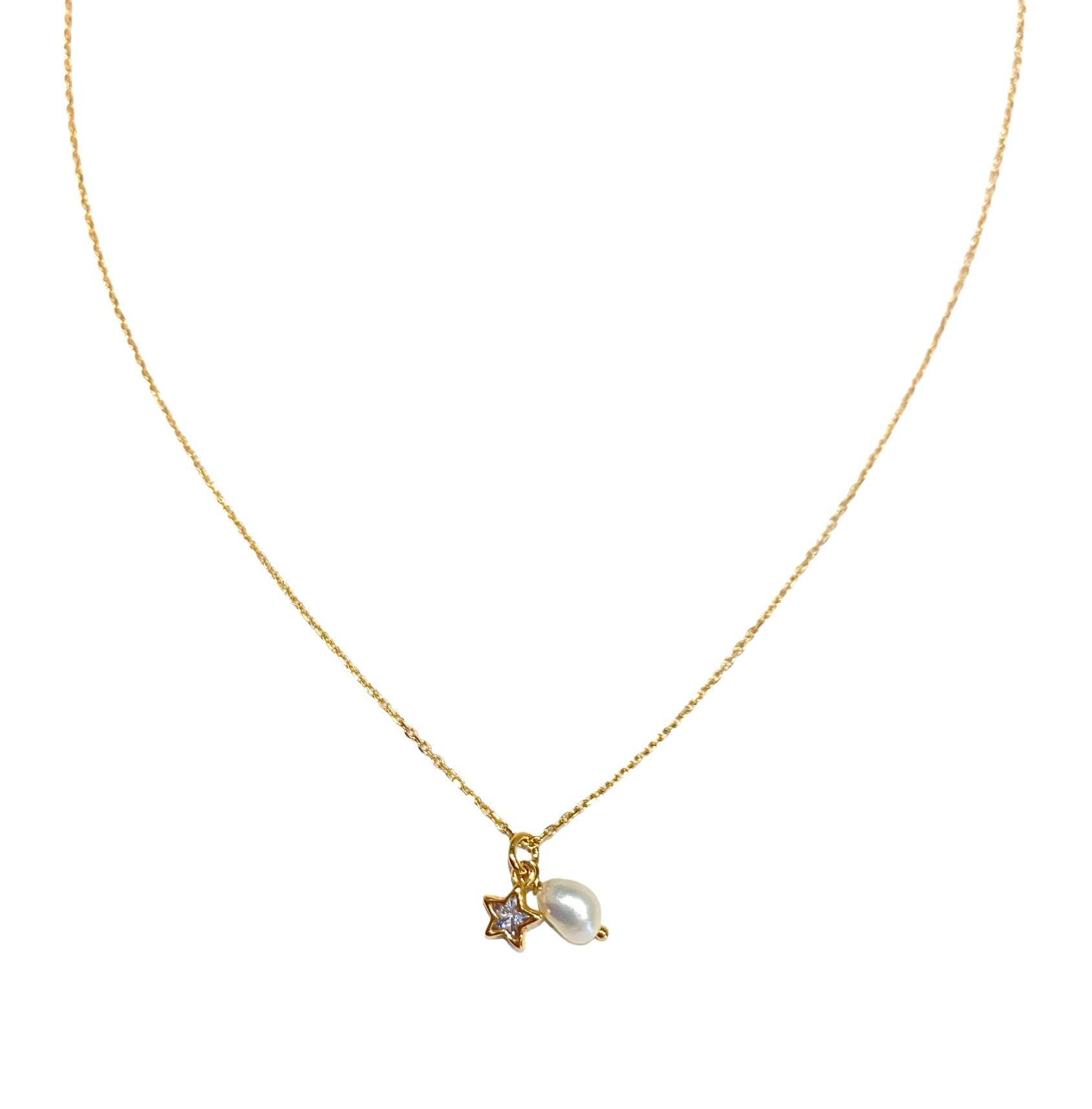Collana in argento925 con bagno in oro giallo e perlina e stella pendente