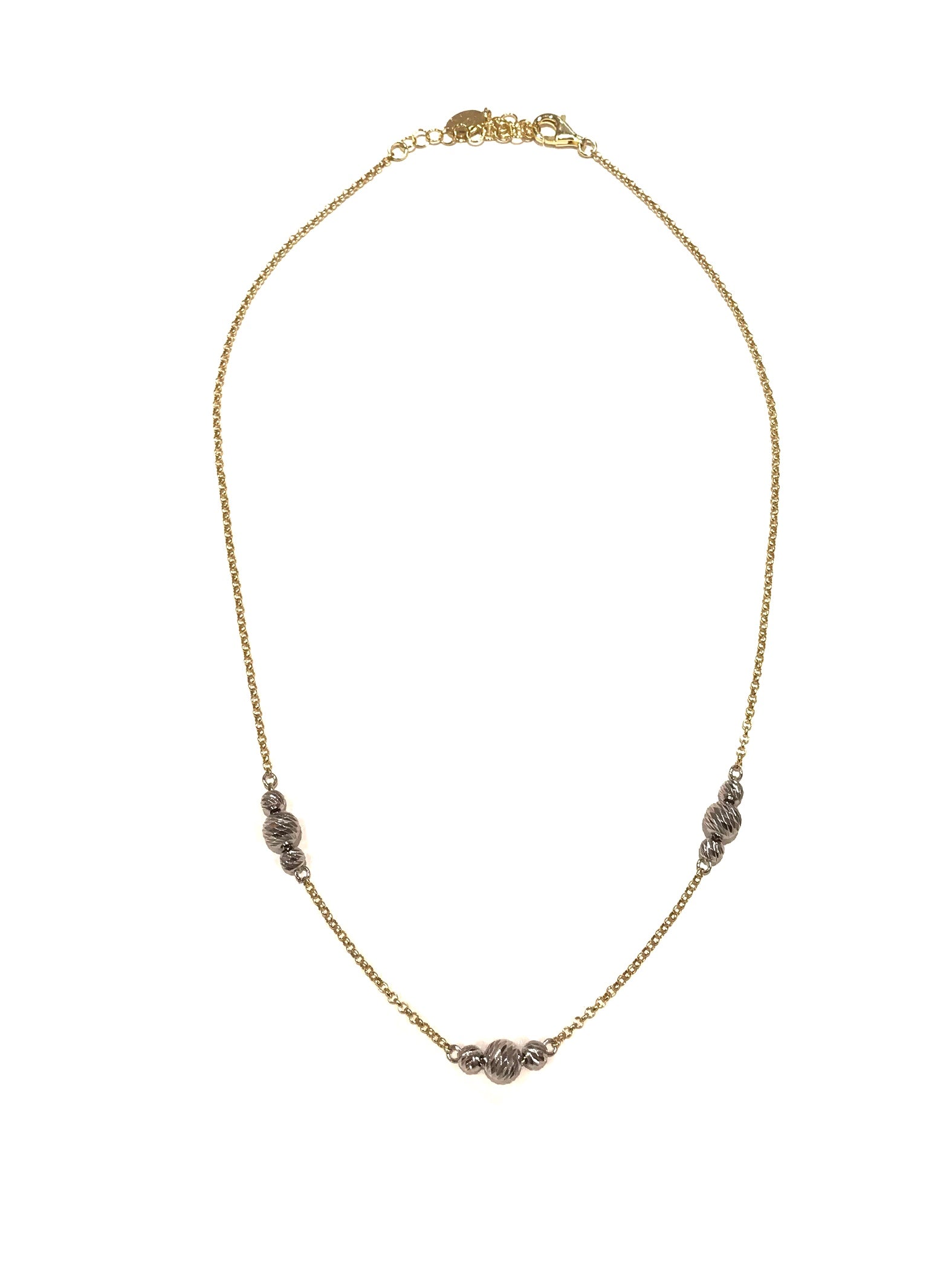 Collana in argento925 con bagno oro giallo con sfere argento sfaccettate.