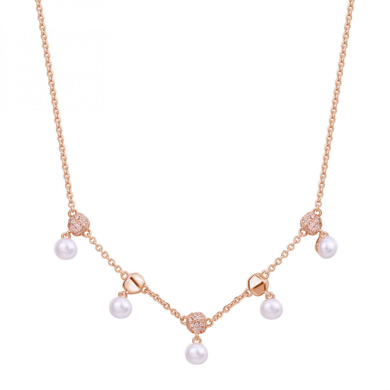 Collana girocollo in argento 925‰, placcatura oro rosa, con 63 cubic zirconia bianchi e 5 perle naturali
