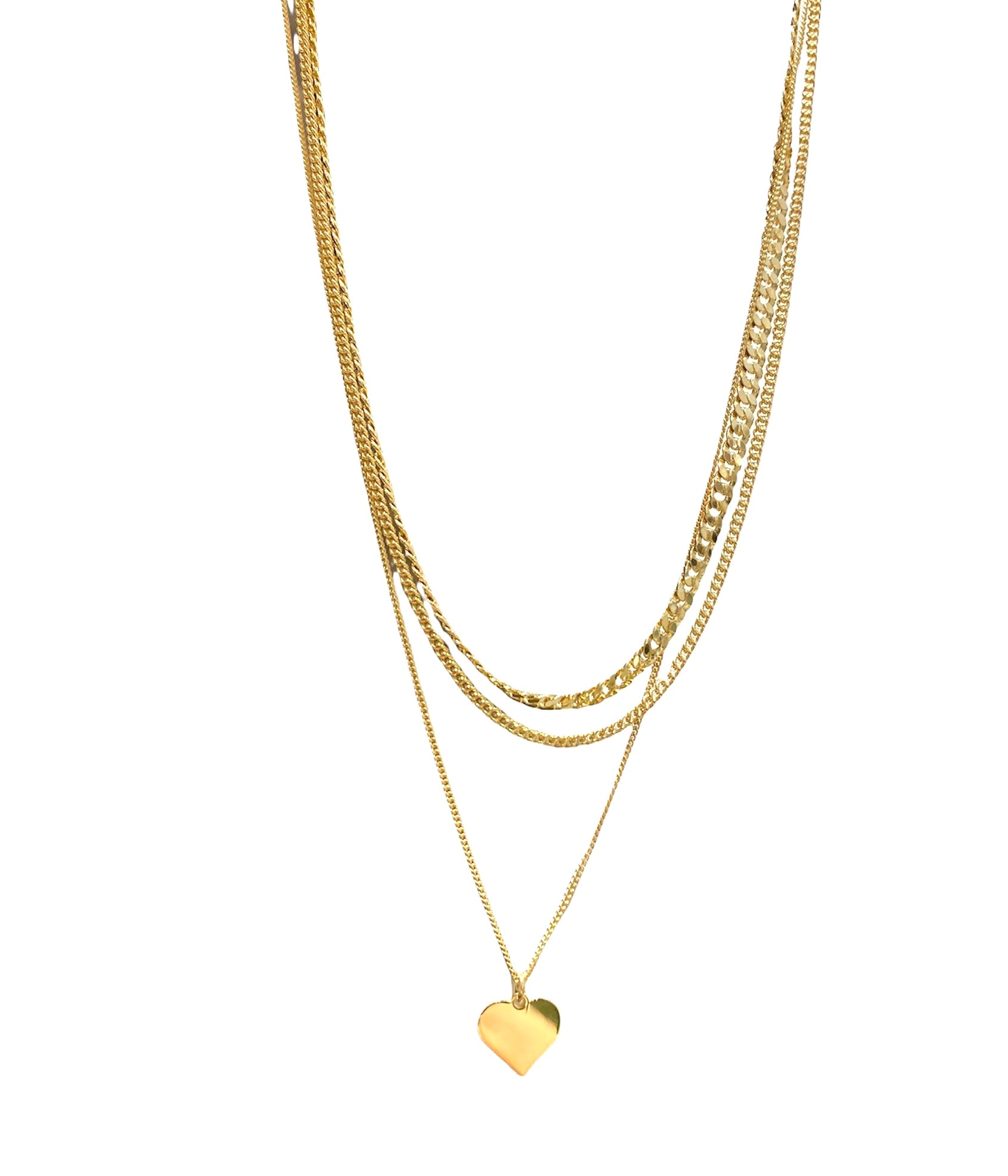 Collana modello girogola a 3 fili,in argento 925 e bagno oro giallo.Cuoricino sulla catenina piu lunga,lunghezza delle catenine: 40/45/50cm chiusura a moschettone