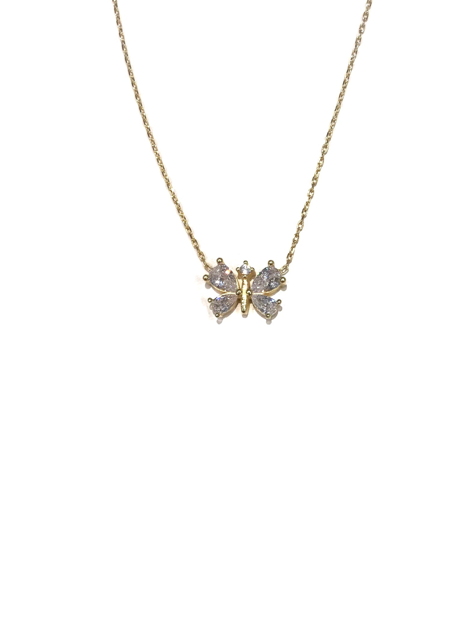 Collana in argento925 con bagno oro giallo e farfalla pendente composta da zirconi colorati.