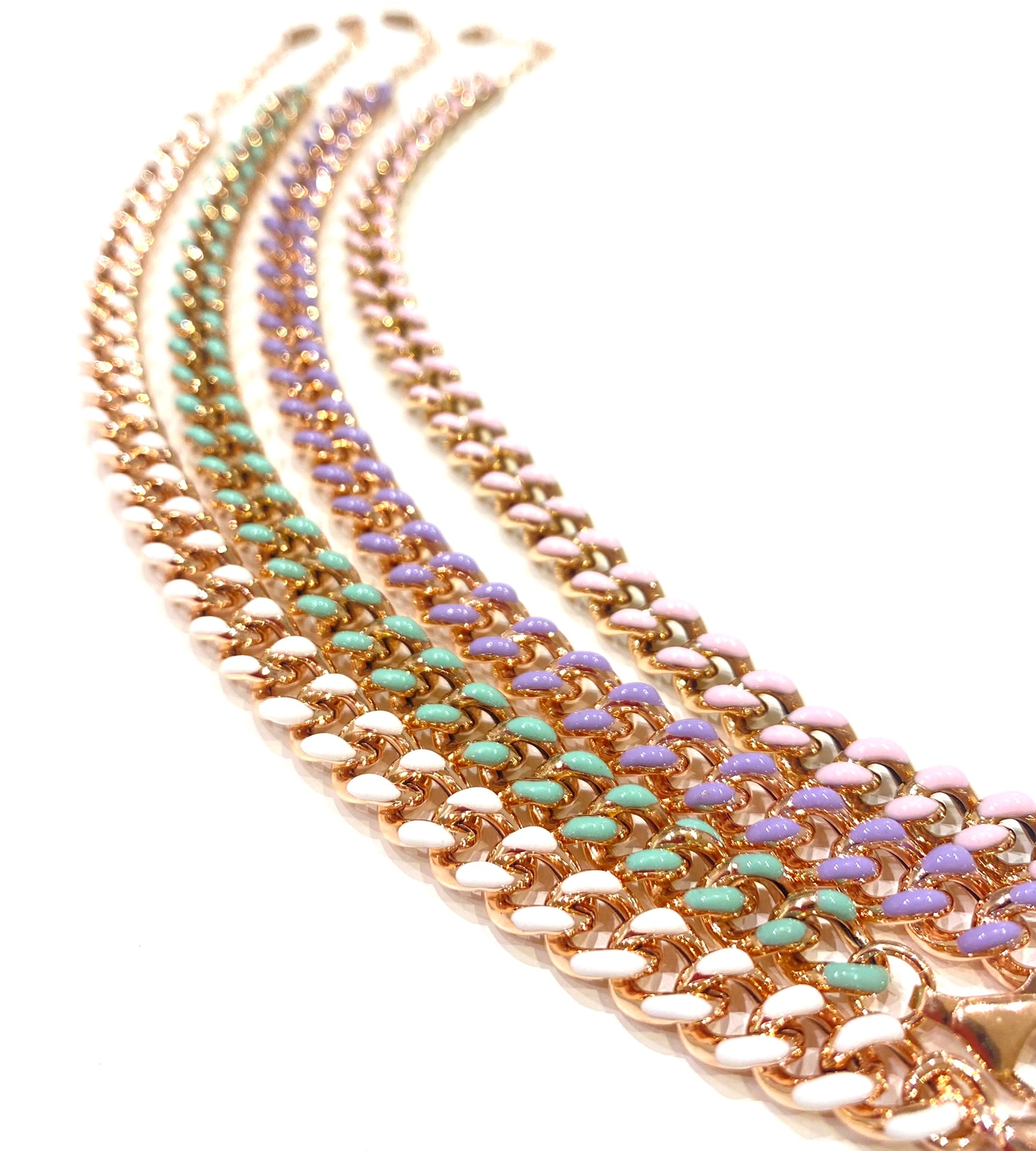 Bracciale in Argento 925/000 con maglia grumetta larga Argento 925°% bagno rosè con superfice anteriore smaltata