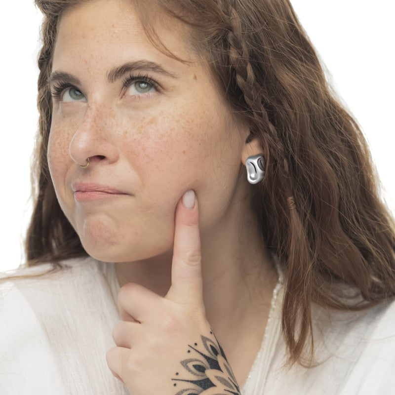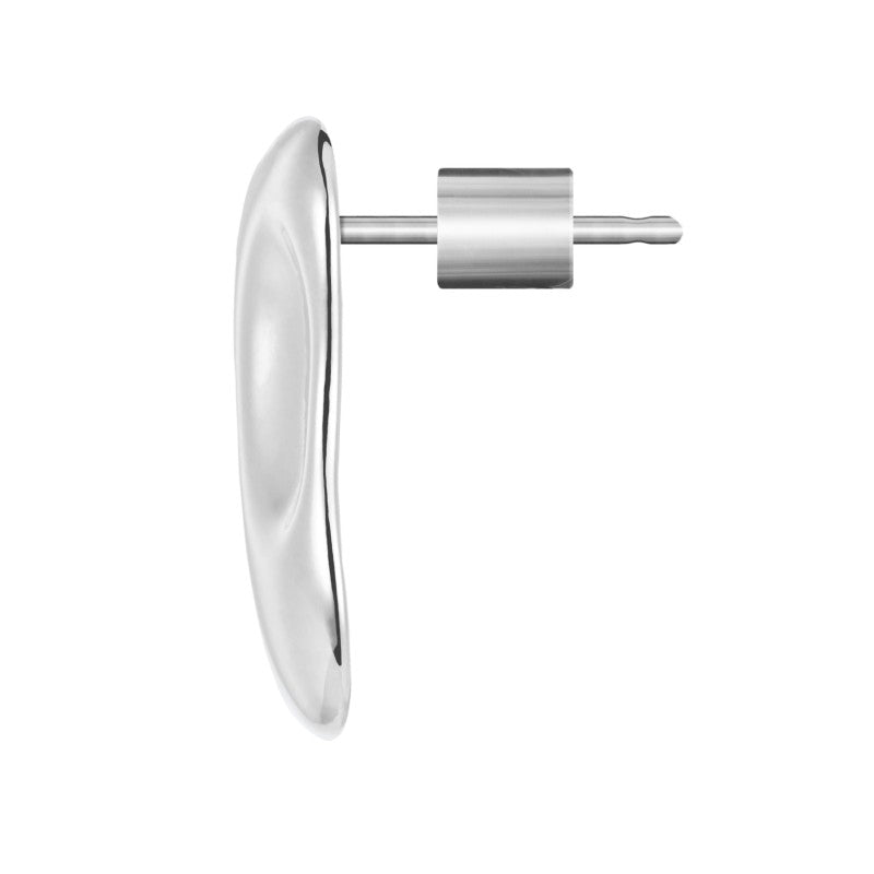 Mono orecchino a lobo in acciaio con forma quadrata irregolare martellata con misura 2,1x2 cm. Marlù logo laserato sul retro. Materiali: acciaio
