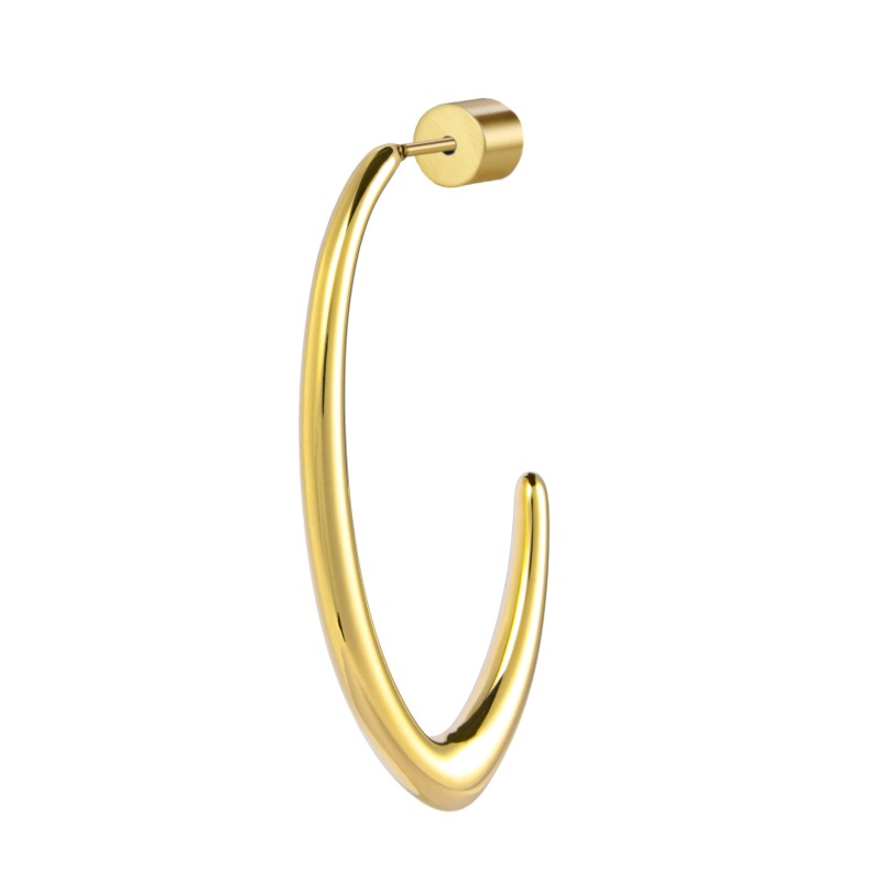 Mono orecchino in acciaio ovale aperto, lunghezza 4 cm, con chiusura aggiuntiva perla a bottone di diametro 10 mm. Marlù logo laserato sul retro. Materiali: acciaio, perla