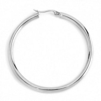 Orecchino cerchio mono in acciaio con diametro 6.1 cm e spessore 0,4 cm. Logo Marlù laserato sulla parte posteriore.