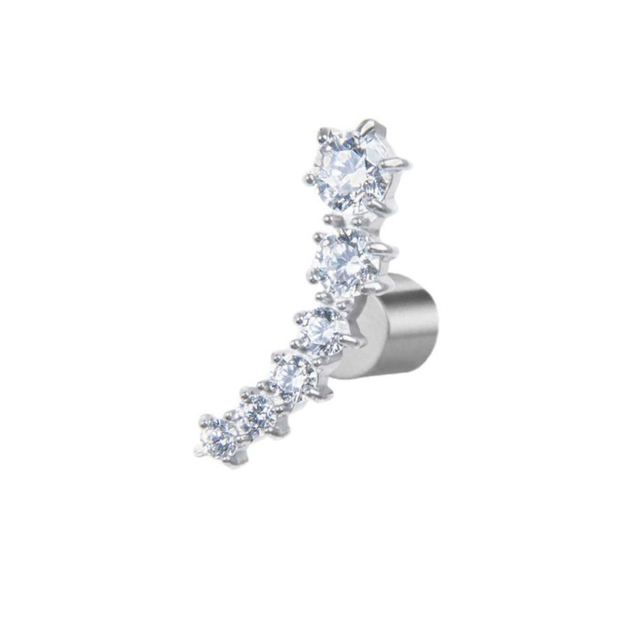 Mono orecchino a lobo in acciaio con elemento con cubic zirconia bianchi di diametro 30 mm, 2,70 mm, 2 mm e 1,60 mm. Materiali: acciaio, cubic zirconia