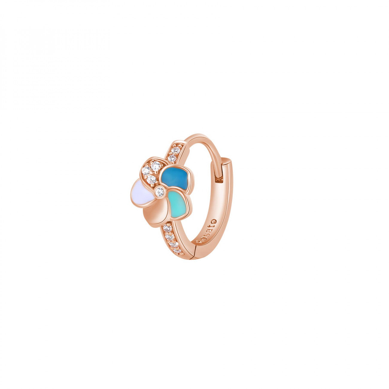 Orecchino singolo cerchietto con fiore in argento 925‰ e placcatura oro rosa, 20 zirconi bianchi, smalti colorati