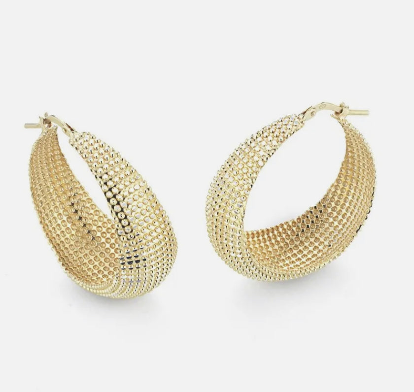 Orecchini a cerchio da Donna in argento 925 placcatura oro giallo a lavorazione martellata