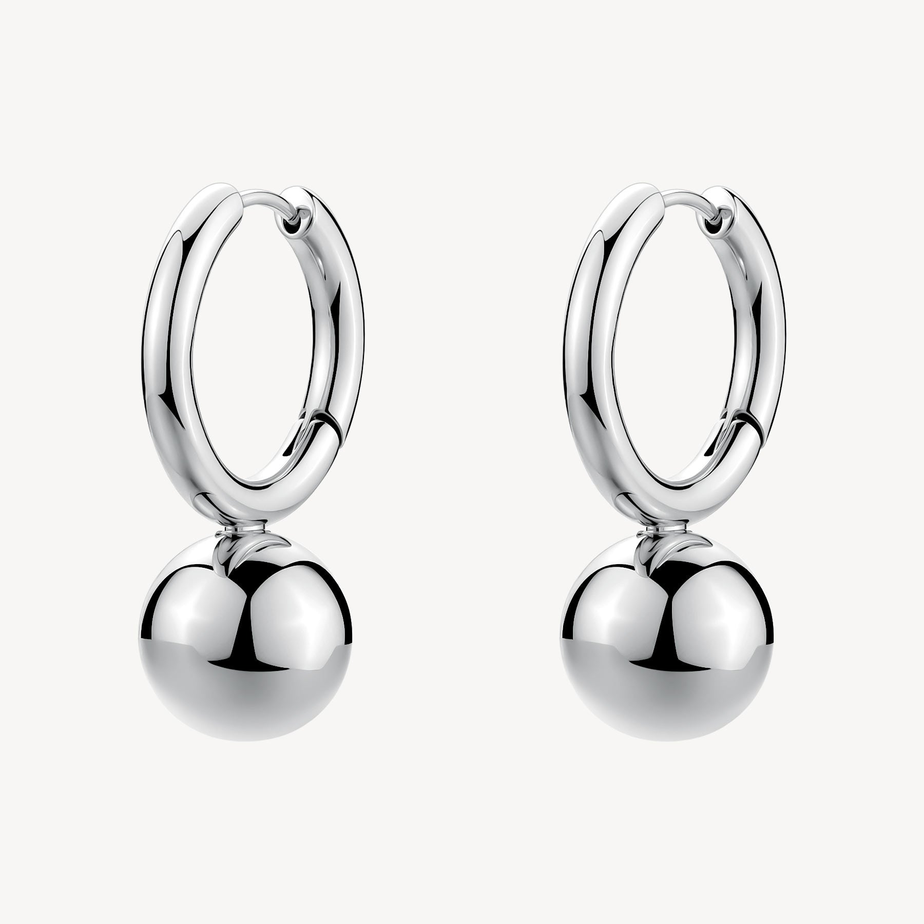 Orecchini a cerchietto in acciaio 316L e pendenti a sfera.
